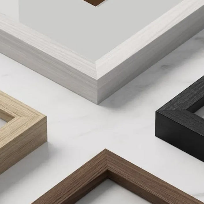 Printed on archival watercolor paper. Framed in solid hardwood with UV-protective glass. Each piece wired and ready to hang.